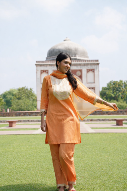 DESCRIPTION Composition: Hina Silk Set Includes: 3-piece set – Kurti & Pant with Dupatta. Fit: Relaxed-fit kurti paired with easy-flowing